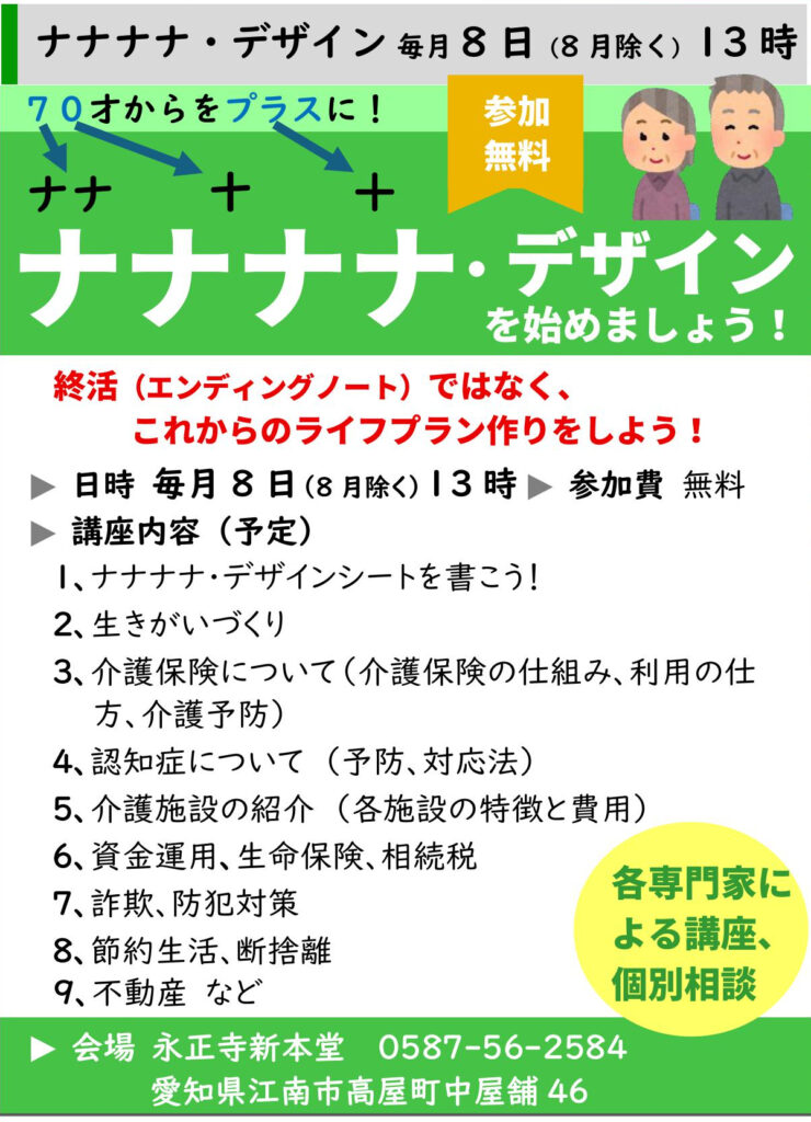 70才からをプラスに『ナナナナ・デザインを始めましょう!』毎月8日開催