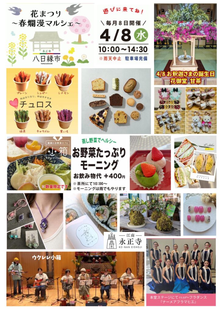 4/8(水)『八日縁市』10時~14時30分【毎月8日開催】 2026.04.07 4/8(水)『八日縁市』10時~14時30分【毎月8日開催】 お問い合わせは、永正寺(0587-56-2584)へお願いいたします。